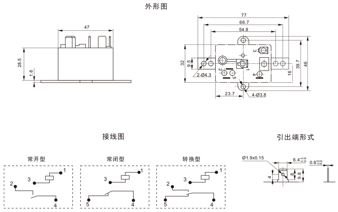 ●具有一组常开、常闭、转换触点形式