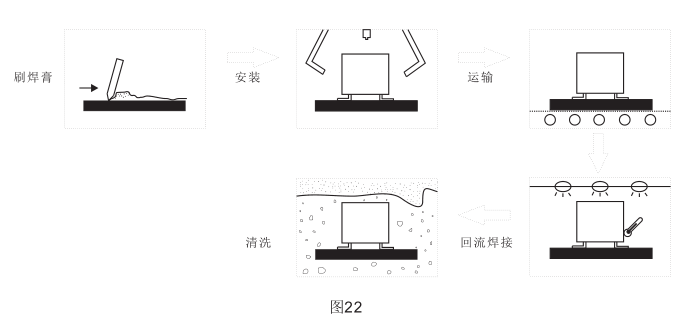 一般SMT型继电器的安装与焊接分类以下几步,见图22:
