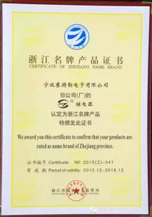 根据《浙江名牌产品认定和管理办法》和《浙江区域名牌评价管理办法(试行)》规定, 在当地政府部门审核推荐的基础上,经组织初审评价、部门核查、行业评议,并经各推委全体会议审议及社会公示,我司的金天牌继电器产品被认定为2015年浙江名牌产品。 经过三